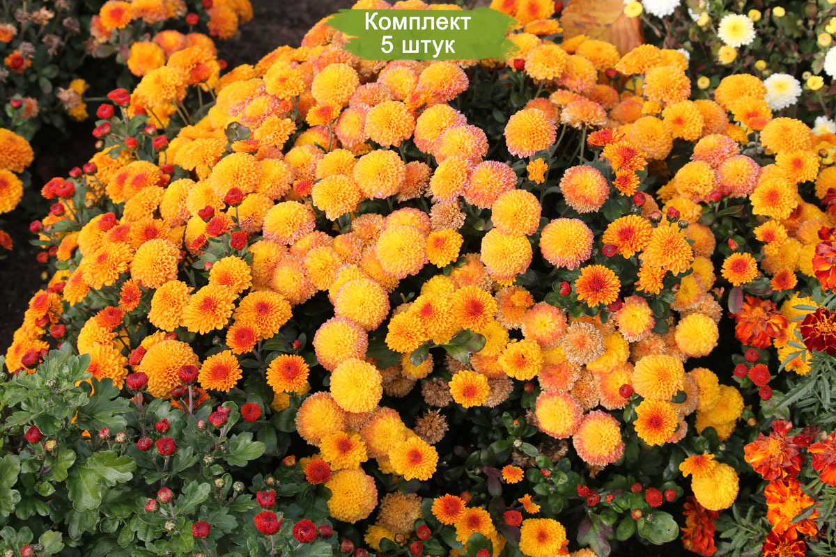 Каждый набор включает 5 здоровых и крепких саженцев, готовых к высадке. Хризантемы мультифлора Спейс отличаются компактным ростом и шаровидной формой куста, что делает их идеальными для создания бордюров, клумб и контейнерных композиций. Эти растения неприхотливы в уходе и устойчивы к неблагоприятным погодным условиям, что делает их отличным выбором как для опытных садоводов, так и для новичков.