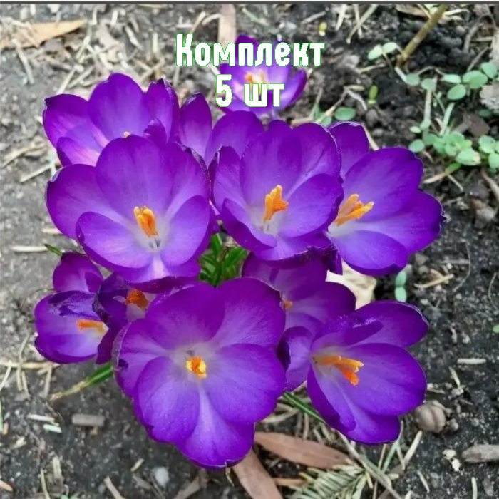 Яркие луковицы крокуса Томазини Barr’s Purple — набор из 5 шт. по цене 4. Раннеспелые многолетники, отличающиеся насыщенно‑фиолетовыми крупными цветами: закрытый бутон напоминает бокал, при раскрытии превращается в изящную звезду с золотисто‑оранжевыми тычинками. Зацветают уже в феврале, устойчивы к холодам и подходят для оформления весенних миксбордеров и контейнеров.