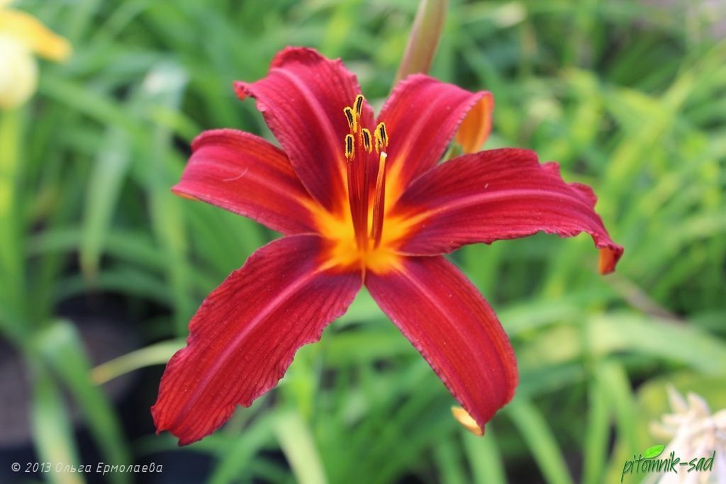 Лилейник гибридный "Кримсон Пират" (Crimson Pirate) – это великолепное украшение для вашего сада. Этот сорт отличается яркими, насыщенно-красными цветками с узкими лепестками и контрастным жёлтым горлом, которые придают ему особую выразительность и шарм. Цветение продолжается с начала лета до середины осени, радуя глаз своей красотой и изяществом.